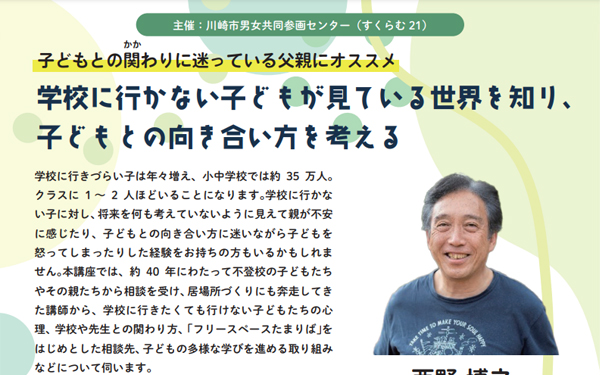 たまりば、西野さんの父親向け講座です。オンラインもあるようです。(編集部)